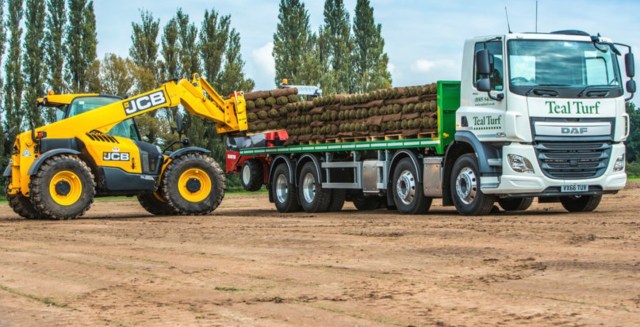 They cut the turf from the field and load it onto a big lorry to bring to our house!