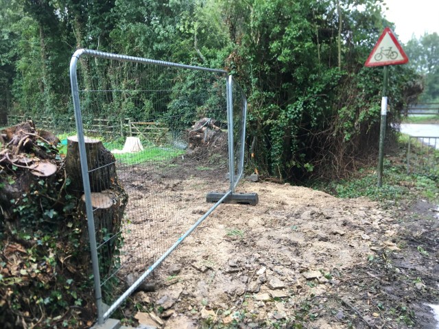 At the end of September the builders filled in the ditch by the lane so that the lorries and diggers could come on to the site.