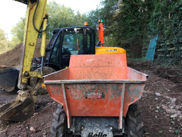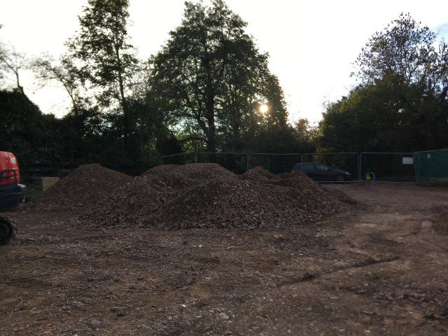 Still lots of gravel left to spread out! We now have fences around our site, to keep things safe.