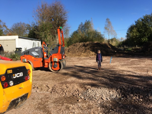 Today we went to visit our site and it was a nice sunny day. The JCB digger and the roller were still there parked up at the site.