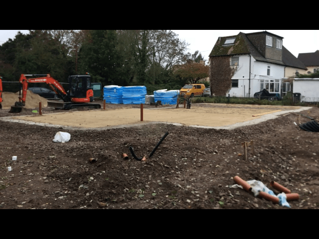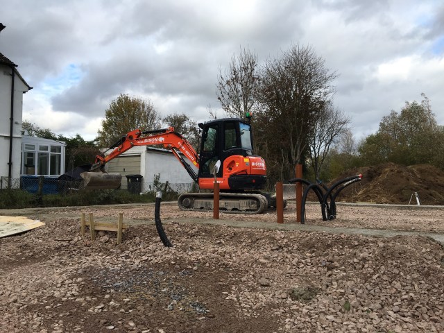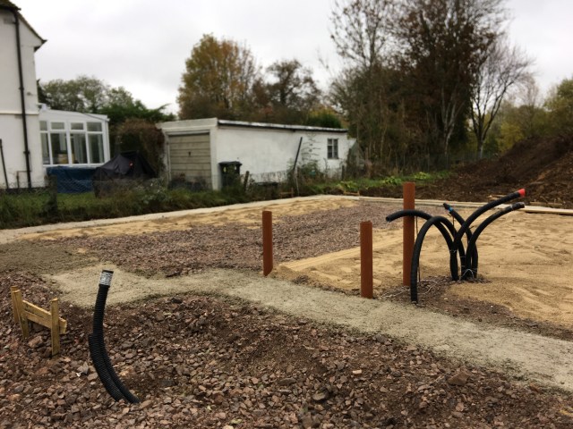 There are now lots of pipes in the ground for the drains and cables.