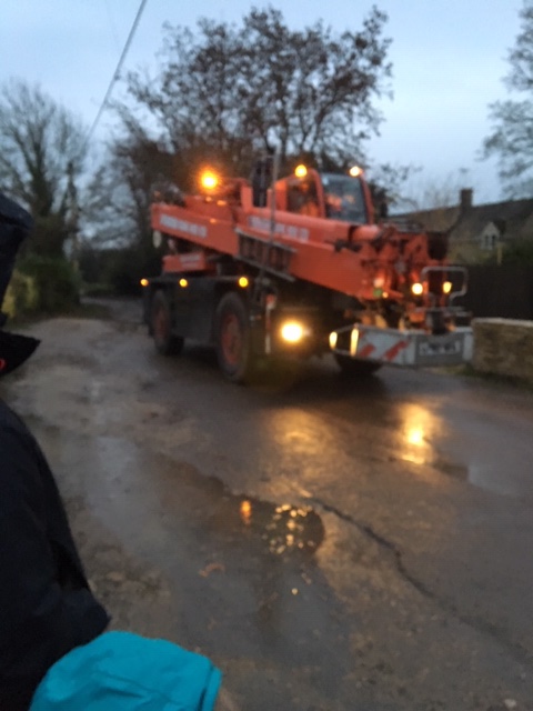 When we were on our way back to the car the crane left the site and chased us down the lane! It was very big.