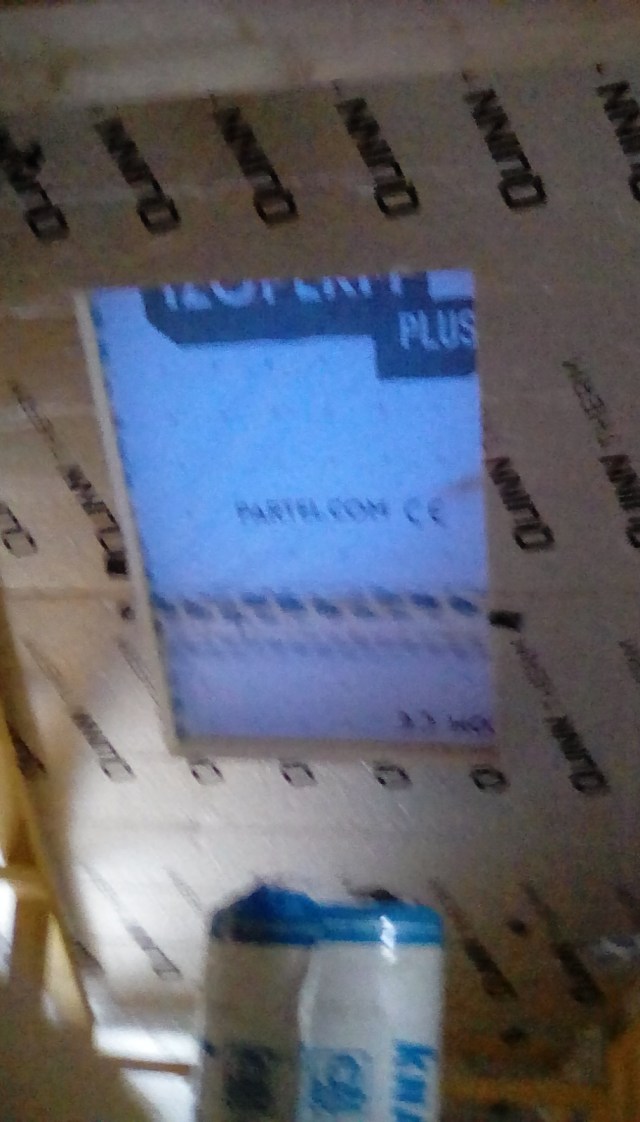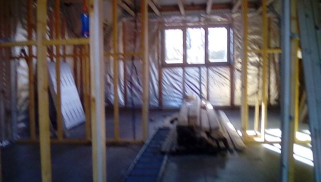 The men have come to put the insulation in the roof. This is the bench in the living room where they were cutting it.