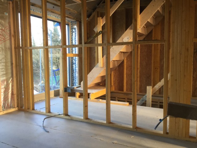 During March the builders have been busy putting lots of wires and pipes inside the house. You can see some cables hanging down from the ceiling.